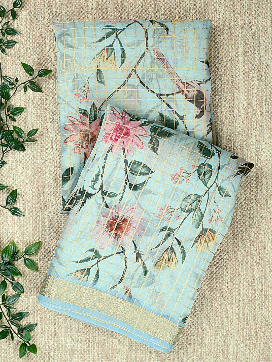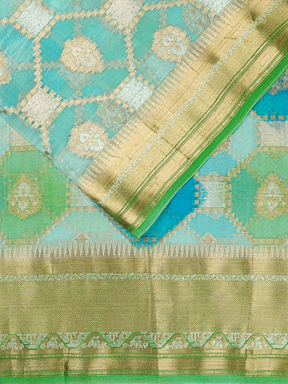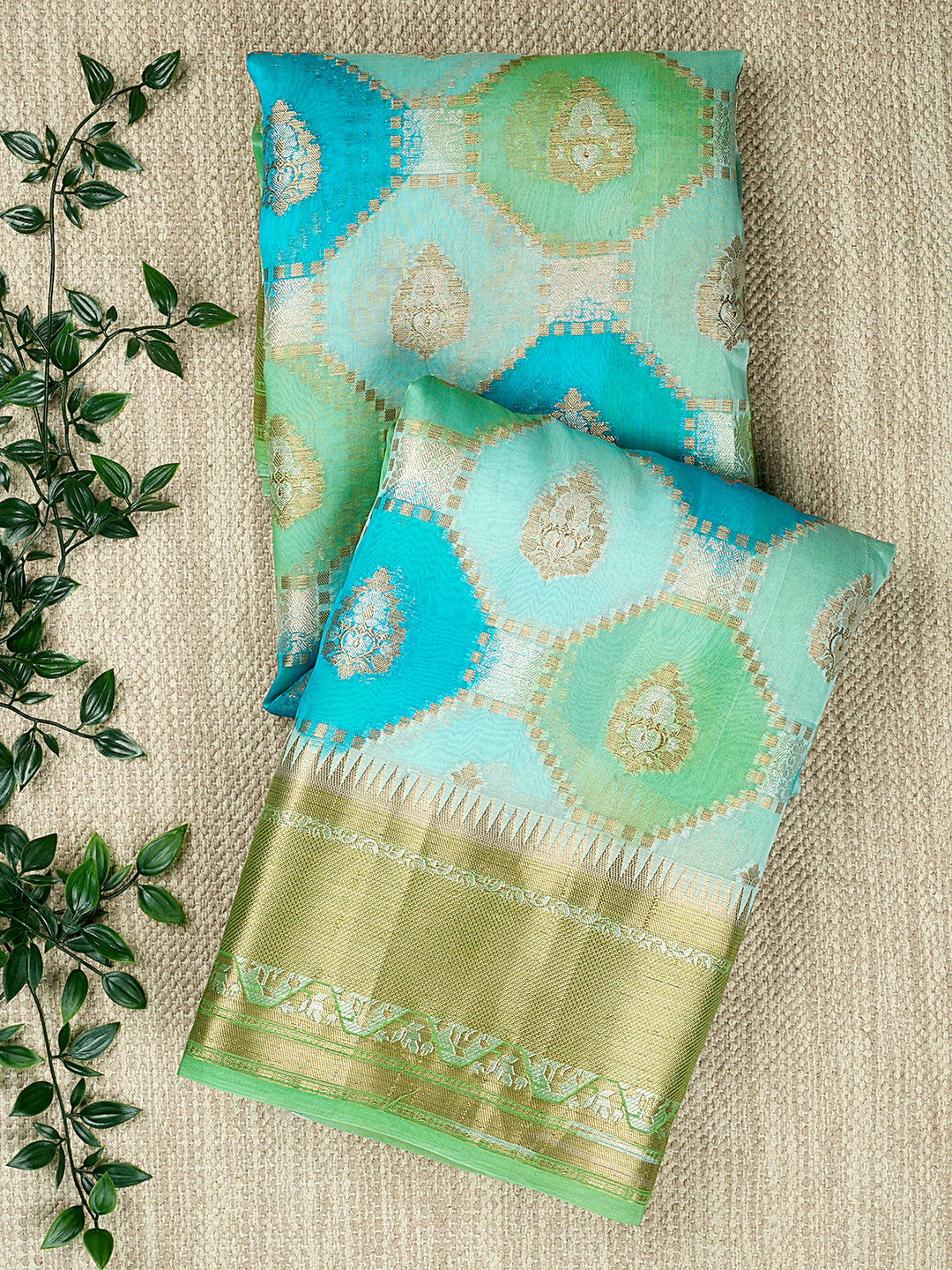 These sarees blend the traditional silk fabric with organza, offering a luxurious sheen and rich texture. Perfect for formal occasions, they are often adorned with intricate motifs or embroidery.