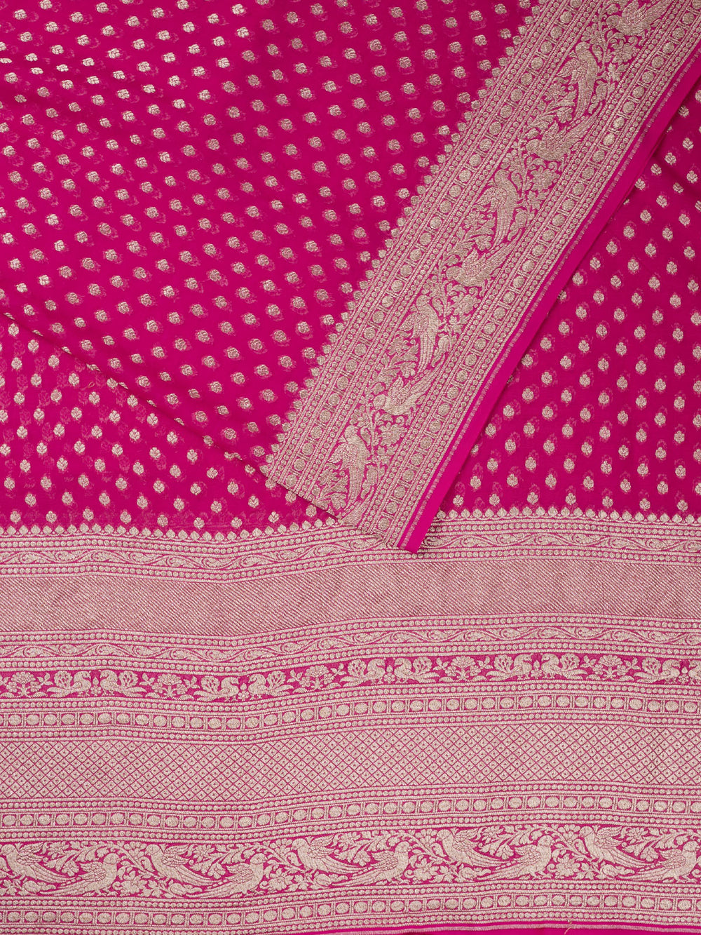 Q5: Are there different shades of pink in Priyuja’s Banarasi saree collection?